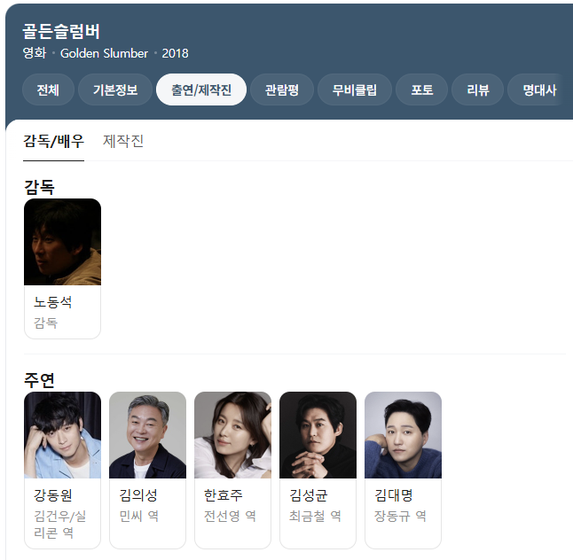 모든 배우들의 집중력 있고 개성적인 캐릭터들이 잘 살려진 몰입도 최고였던 '골든슬럼버'